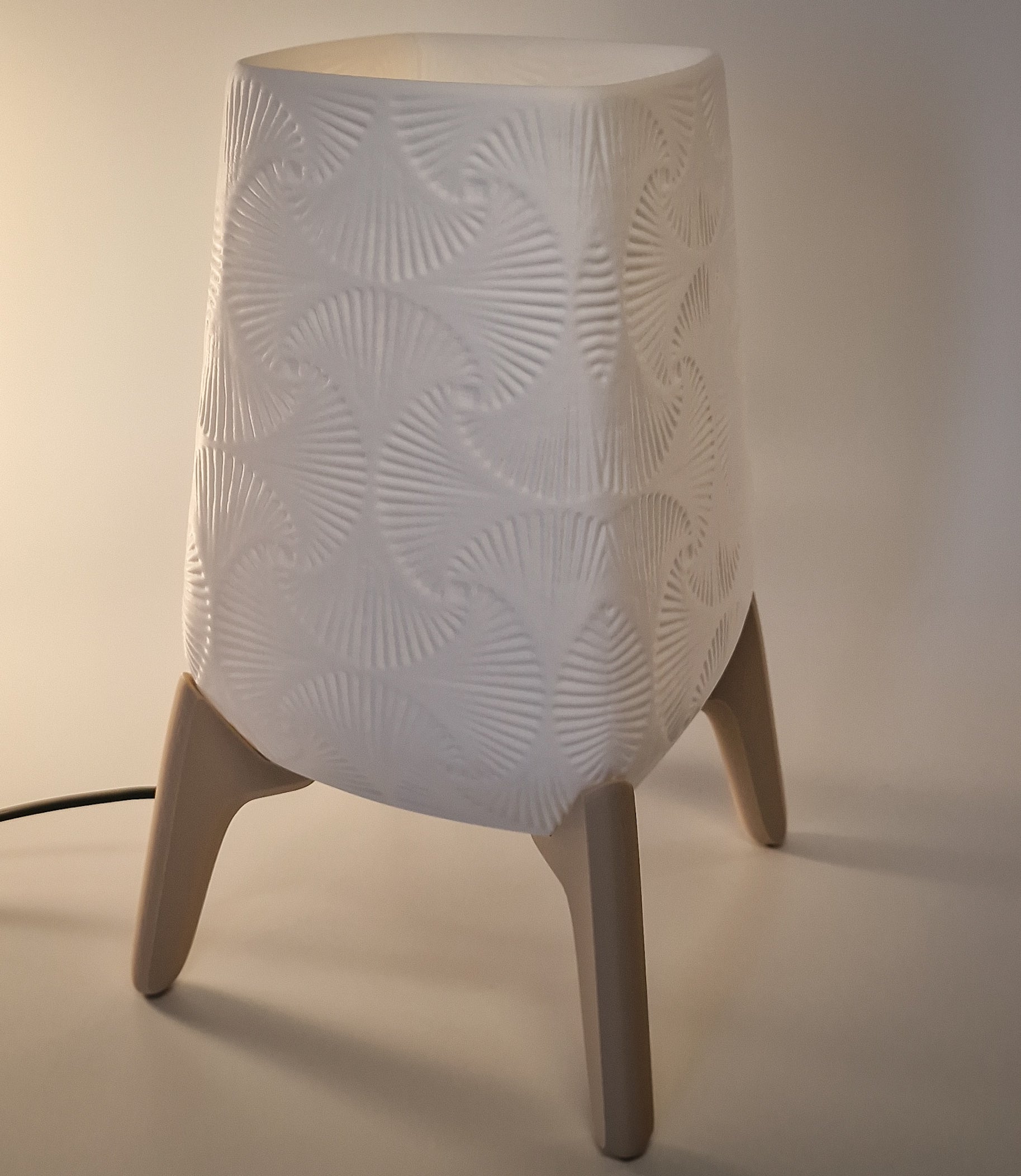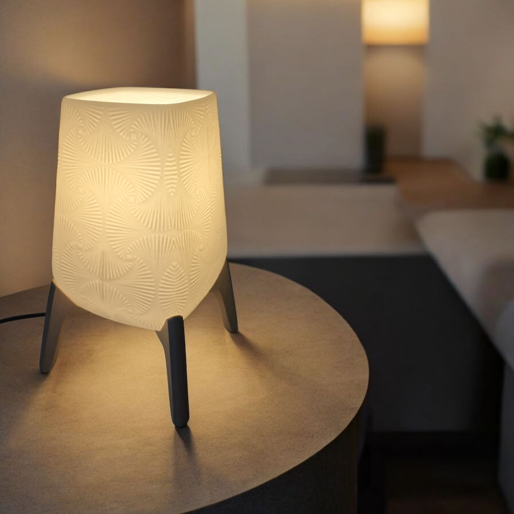FREYA is een design tafellamp met een zachte, warme gloed en een verfijnde patroonstructuur in de kap. Het licht wordt mooi diffuus verspreid en geeft een rustige sfeer, terwijl de poten de lamp een moderne, luchtige uitstraling geven. Een stijlvolle blikvanger voor woonkamer, slaapkamer of werkplek.