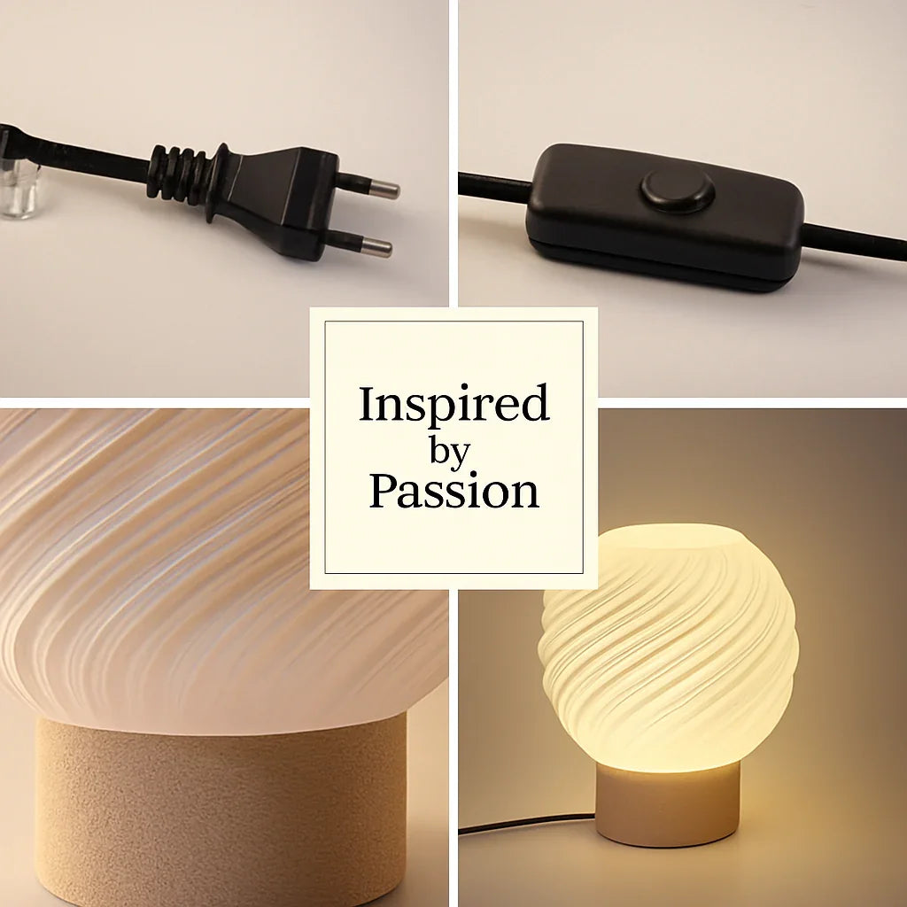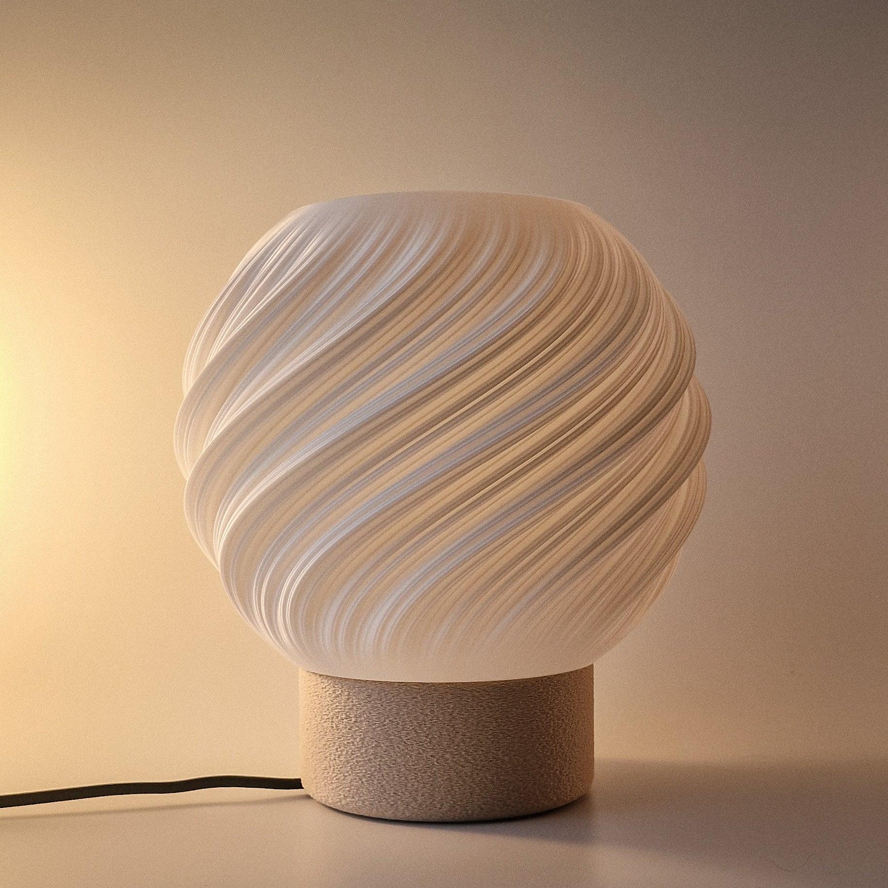 Orbe – moderne tafellamp met spiraalvormige kap & crèmekleurige structuurvoet De Orbe tafellamp combineert modern design met een warm, verfijnd...