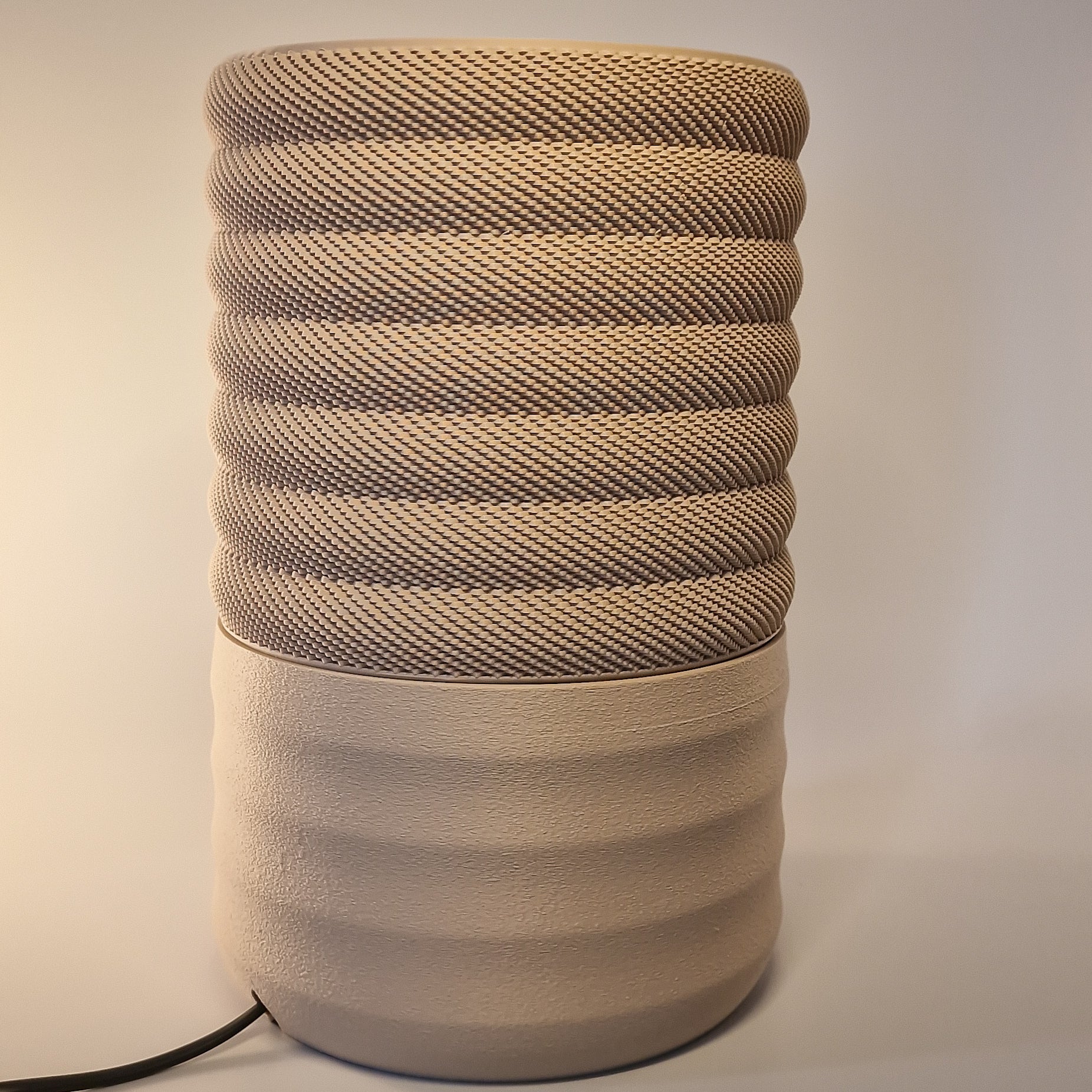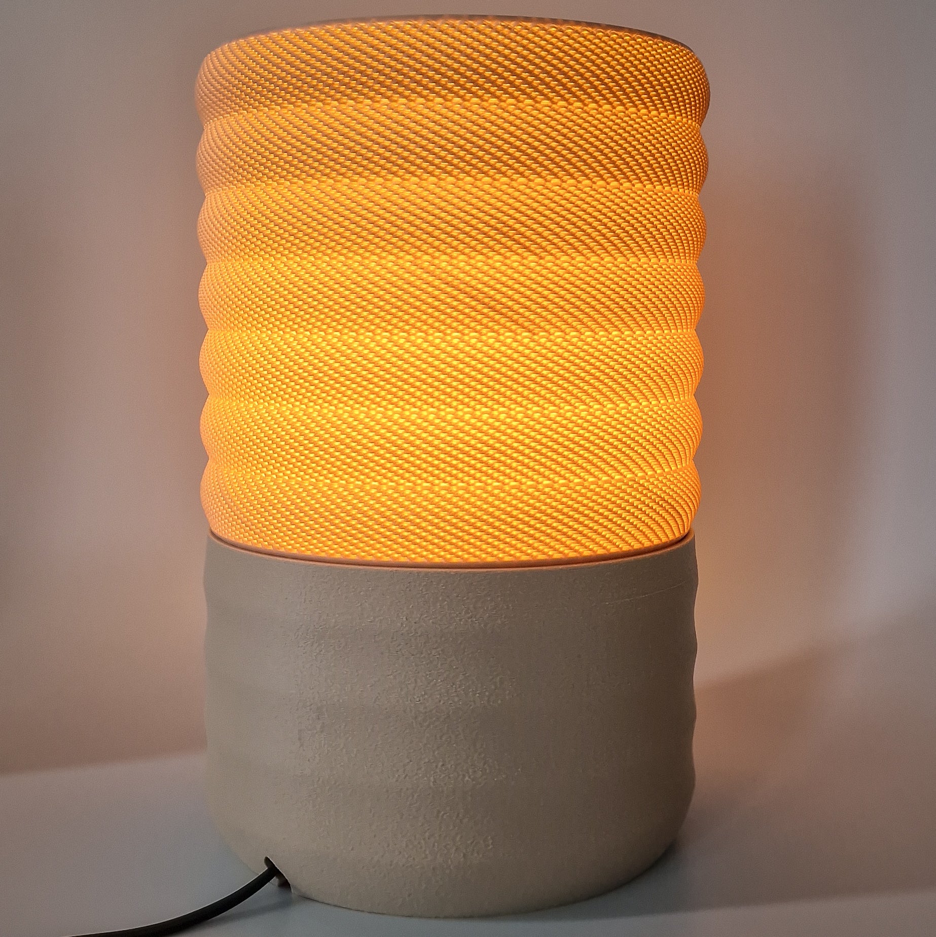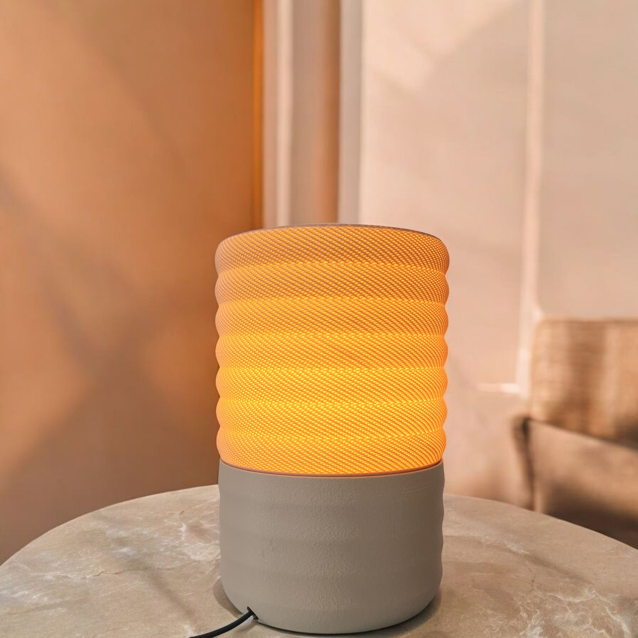 Woven is een moderne tafellamp met een verfijnde, geweven lichtstructuur en een rustige, matte creme kleur basis. Het licht voelt warm en zacht aan, met een subtiel patroon dat je interieur direct sfeer geeft zonder druk te worden. Een stijlvolle blikvanger voor woonkamer, slaapkamer of werkplek.